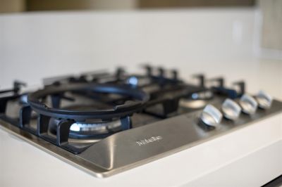 - Kitchen with Miele appliances including gas cooktop and integrated dishwasher